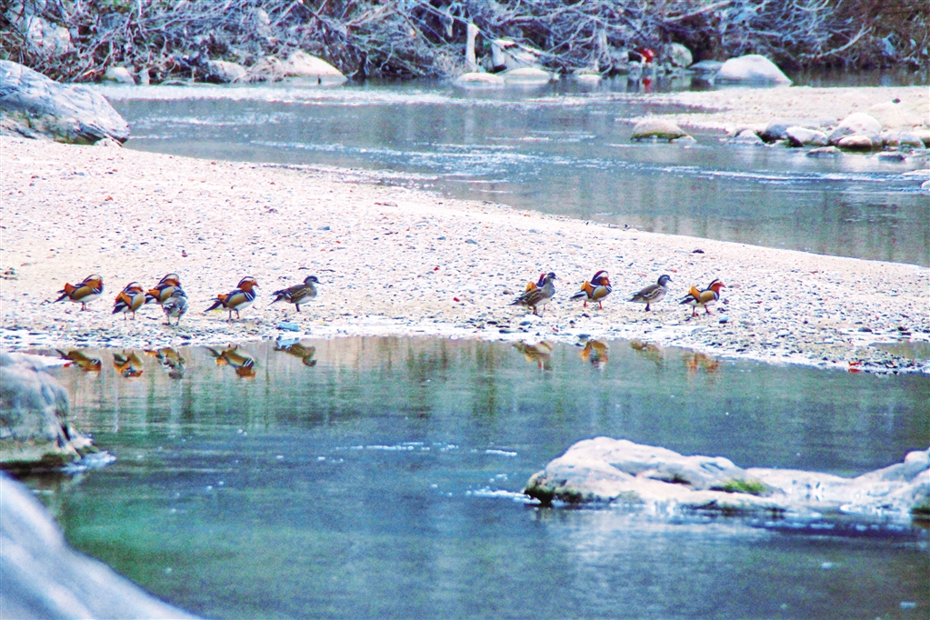 □ 楊繼斌周末,我照例在河邊拍朱鹮,偶遇一起打羽毛球的好友楊林!皵z影家,我們院子后面河里有一群鴛鴦,好看得很,你不去拍幾張美照!彼蛉さ卣f道!皩庩儭