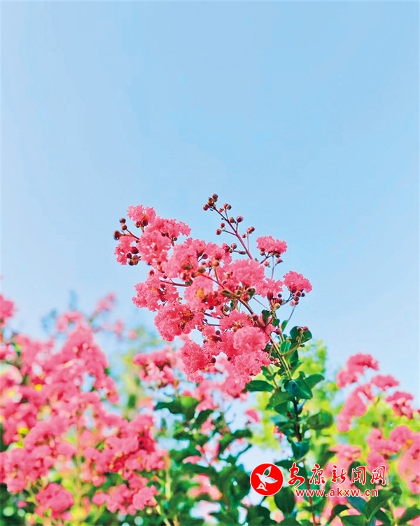 “獨(dú)占芳菲當(dāng)夏景,不將顏色托春風(fēng)!碑(dāng)上百株紫薇花在鳳凰山里絢爛枝頭時(shí),我與它們?cè)诖竽蠝舷嘤!?/div>